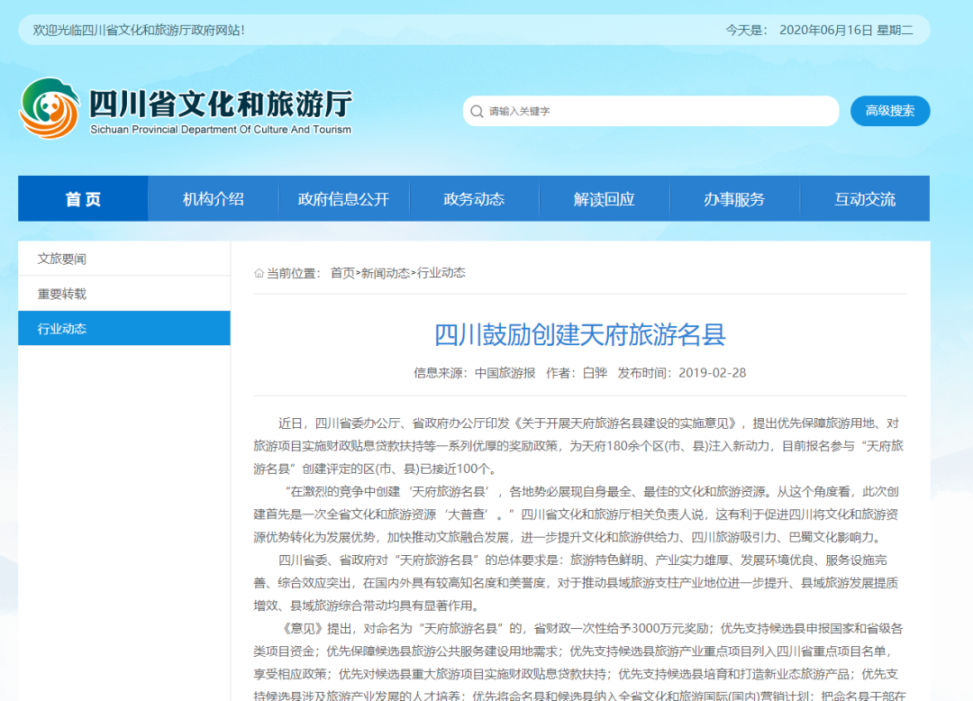 2019年2月22日,四川省文化和旅游廳召開新聞通氣會(huì),對(duì)省委辦公廳、省政府辦公廳印發(fā)的《關(guān)于開展天府旅游名縣建設(shè)的實(shí)施意見》(以下簡(jiǎn)稱《意見》)進(jìn)行通報(bào)并解讀。